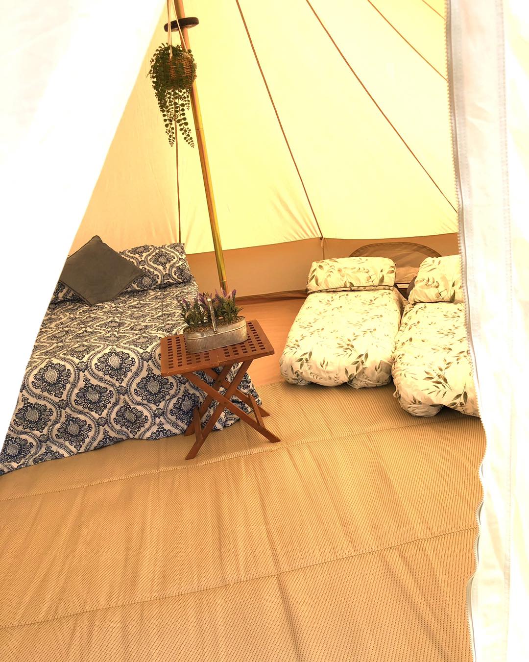each tent comes with flooring, 1 x double or 2 x single beds with bedding and